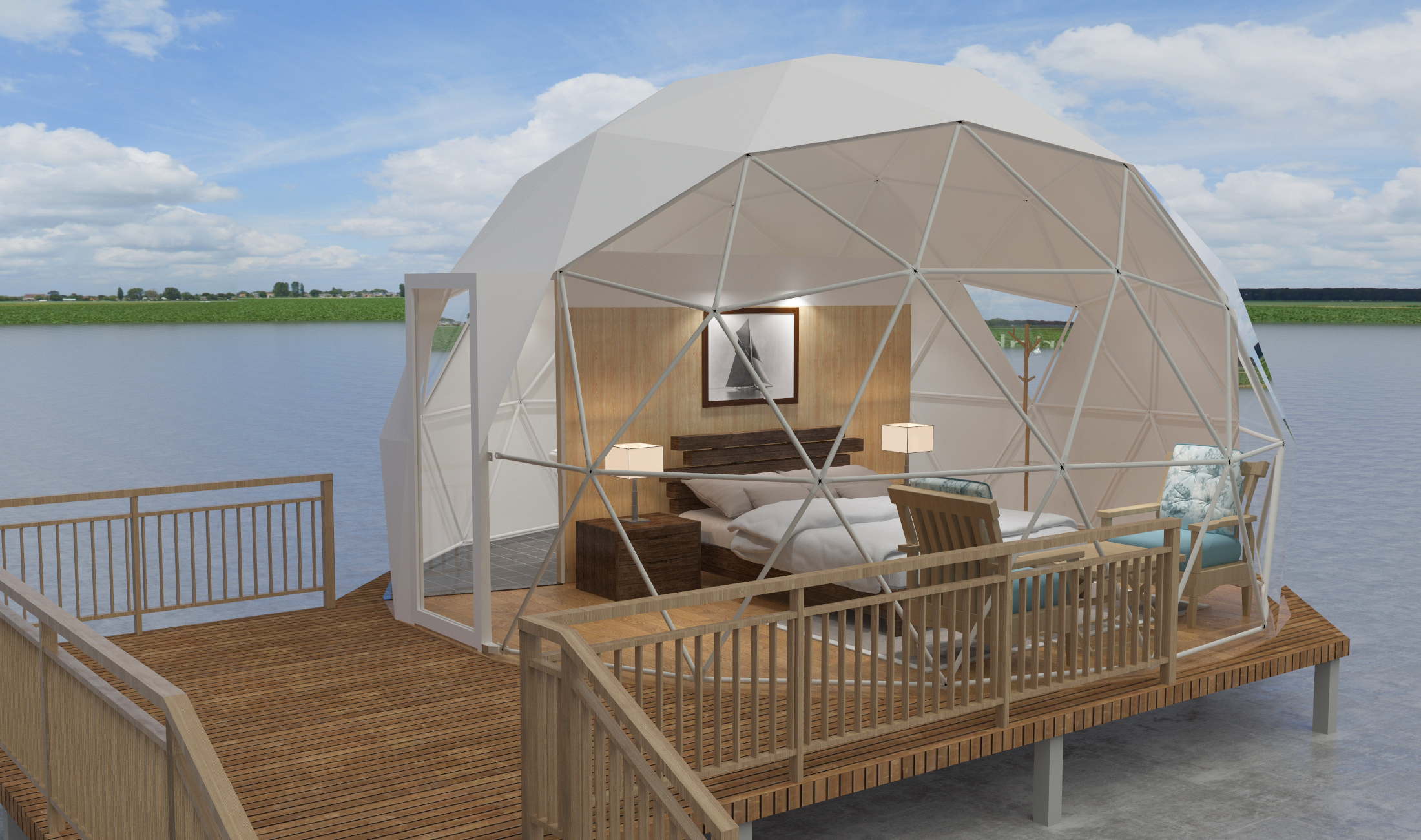 Our range includes both small and large dome tents with diameters ranging from 6 to 12 meters. These tents are compact yet cozy, akin to dome-style houses, and can be tailored and set up according to the number of occupants. Larger geodesic dome tents offer ample living space and adaptable interior designs to accommodate more individuals comfortably. They can be furnished with additional beds and furniture to enhance the overall comfort of your experience.